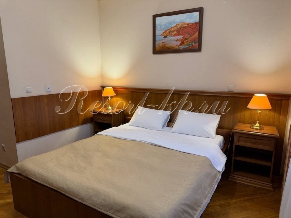 (6 номеров, площадь – 38 кв.м, вид из номеров на горы, балконы есть не везде). В номерах: 2 раздельные кровати, тумбочки, диван-кровать для двоих, зона отдыха отделена от спальни декоративной ширмой, телевизор, холодильник, телефон, радио, сейф, центральное кондиционирование, душевая кабина, унитаз, умывальник, фен, косметические принадлежности, биде. |
